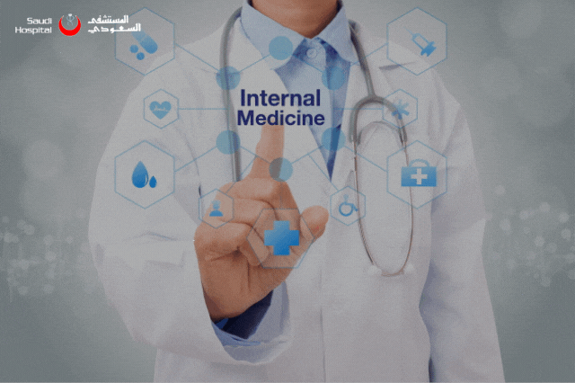 The department covers all sub-specialties related to internal medicine and all diseases for adults under the supervision of qualified and highly trained specialists. It deals with all emergency and chronic diseases and follows up on the cases periodically and is specialized in all diseases related to endocrine producing hormones such as pancreas, pituitary gland, thyroid gland and glandular gland Glandular gland and provide treatment for fat disorders, cholesterol, obesity, endocrine tumors, calcium disorders, mineral salts and bone diseases related to metabolism.